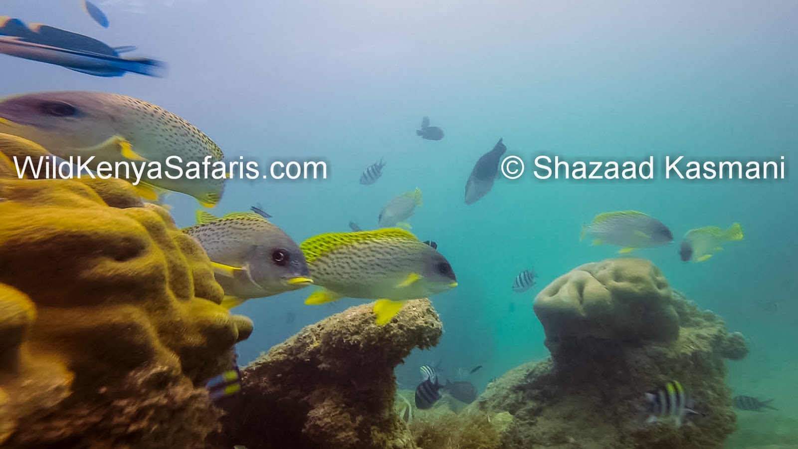 | Some Black Spotted Sweetlips on the reef in Kenya |